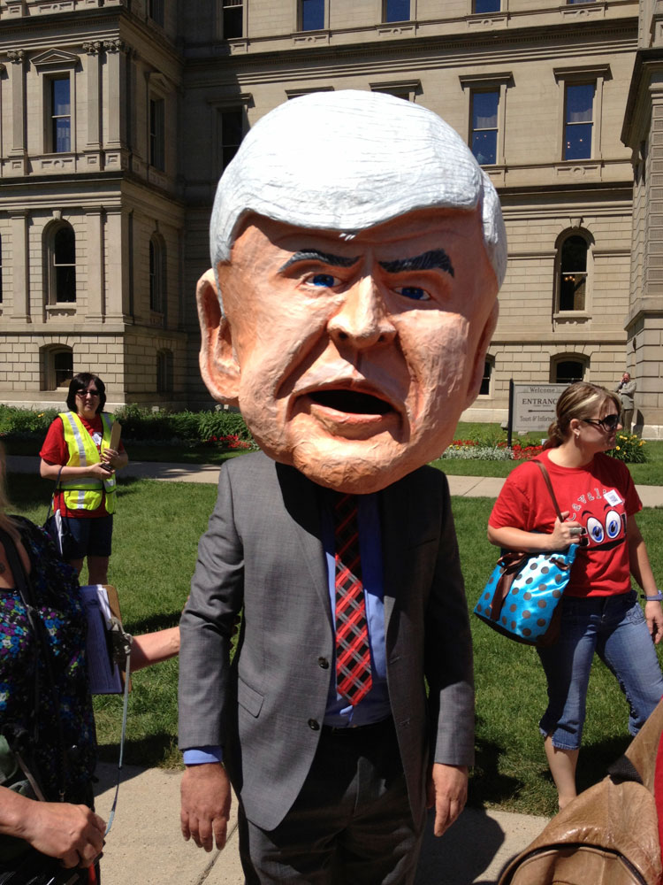 Ten teachers from ten different school districts were brought up to give short snippets about life in a Michigan public school today, under the “leadership” of Rick Snyder and the legislative Republicans (unfortunately I missed part of the first speaker):