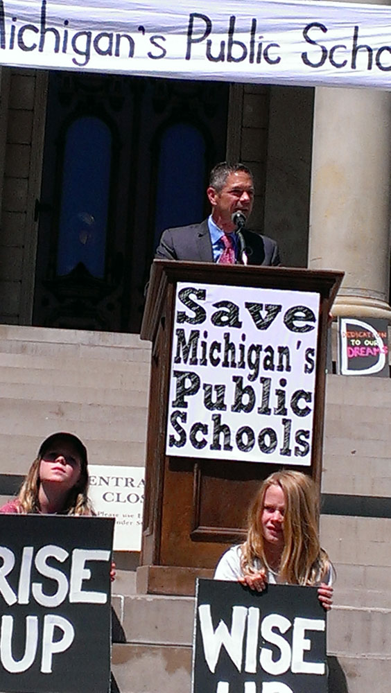 Other speakers included State Senate Minority Leader Gretchen Whitmer, State Representative Ellen Cogen Lipton, State Board of Education President John Austin and Michigan Parents for Schools leader Steven Norton, along with numerous others.