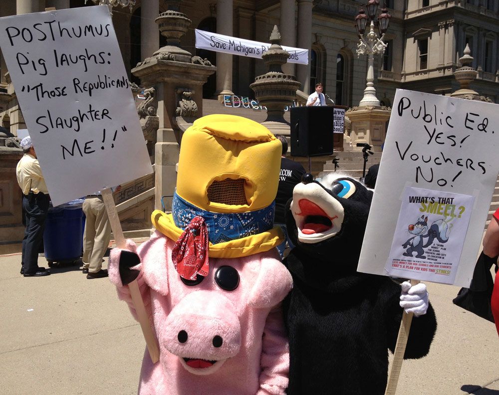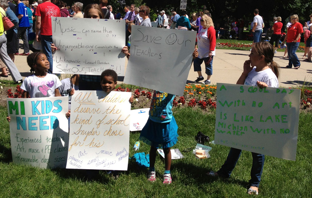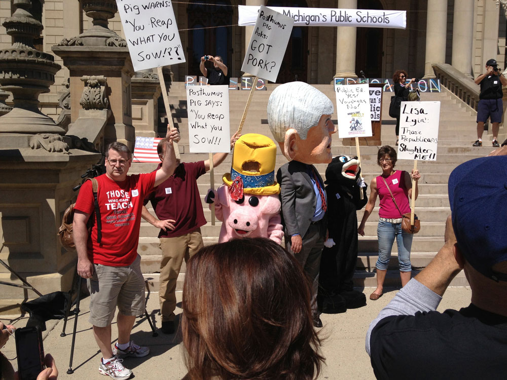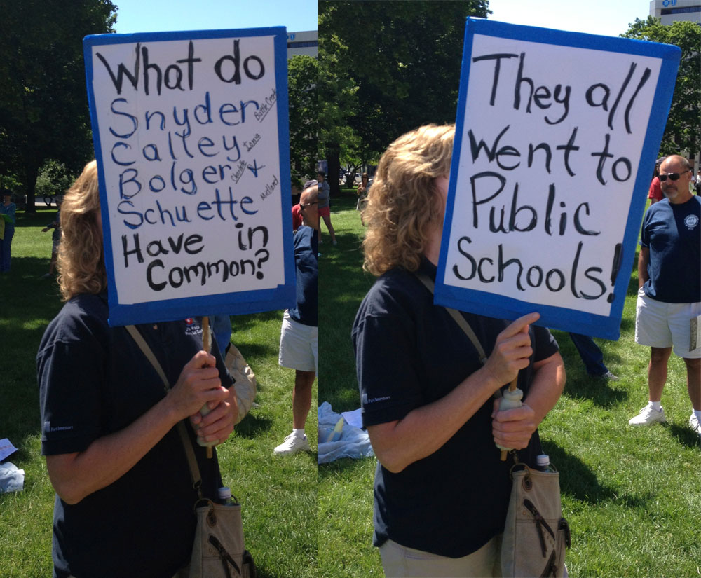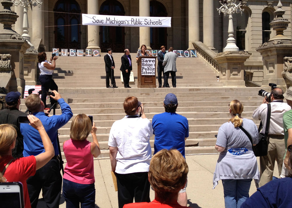 With that in mind, here’s a collection of photos & videos from today’s event, which was arranged for by a completely grass-roots organization called, simply enough, Save Michigan’s Public Schools.