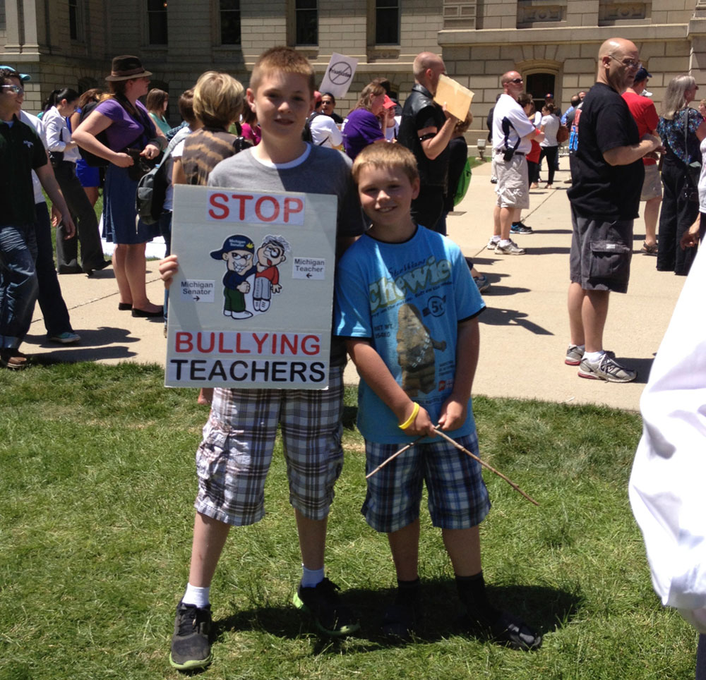 Eclectablog himself wasn’t able to attend the grassroots-organized rally in support of the public school system in Lansing this morning; fortunately I was able to attend, with a contingent of my fellow Bloomfield Hills-based public school advocates. Yes, that’s right: Even in Bloomfield Hills, where most of the residents seem to think that the deliberate, systematic destruction of the Michigan Public School System will somehow spare them, there’s a solid base of concerned parents and other residents who know the truth: Sooner or later, Gov. Snyder and the Republican-held state legislature will come after us as well, unless they’re stopped.