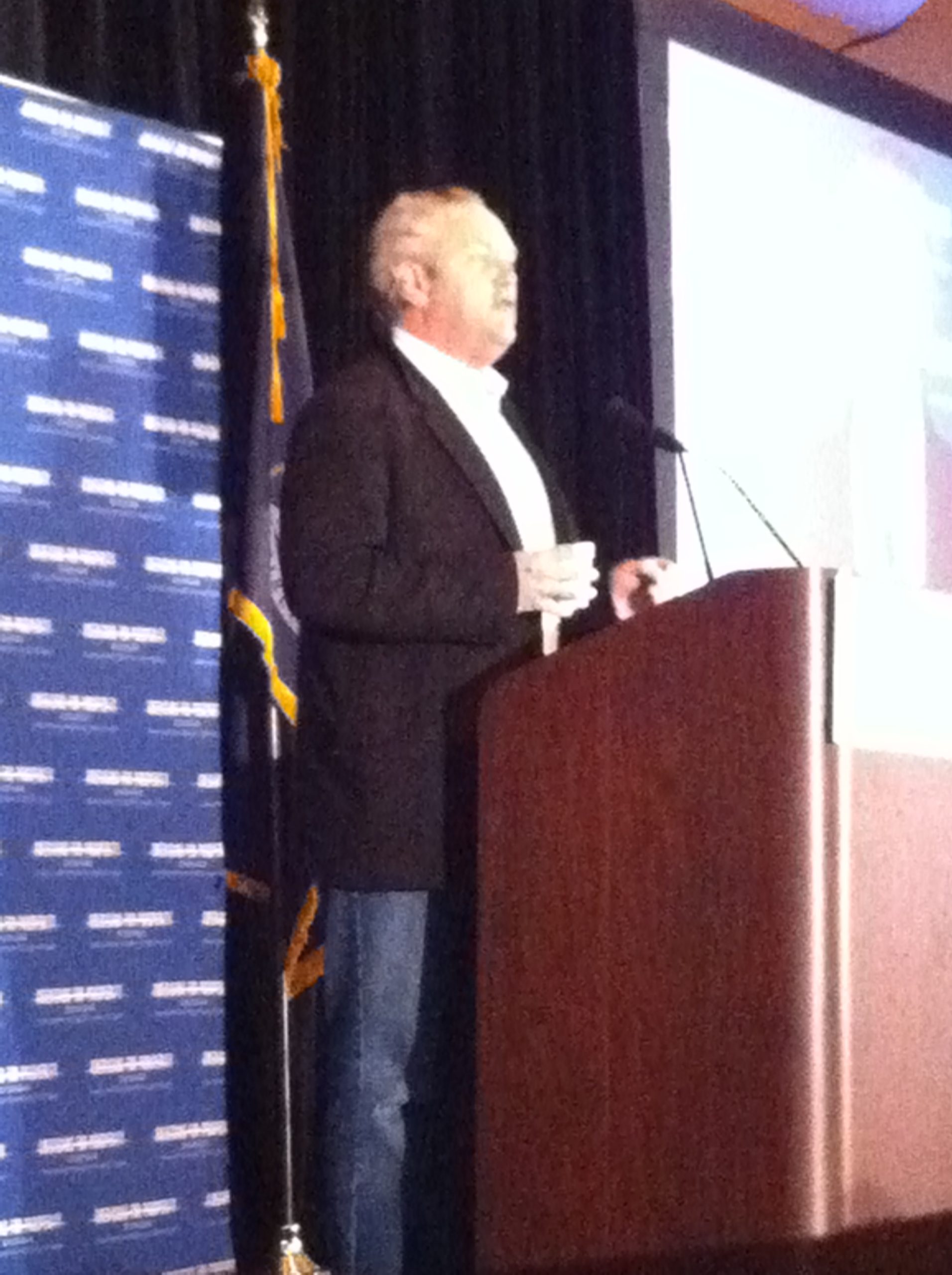 Next up: Dr. Gary Wolfrum to talk about “issues”: the “government bridge” and auto insurance reform. Shorter version of his speech: no stinking government bridge to Canada and no unlimited auto insurance claims.