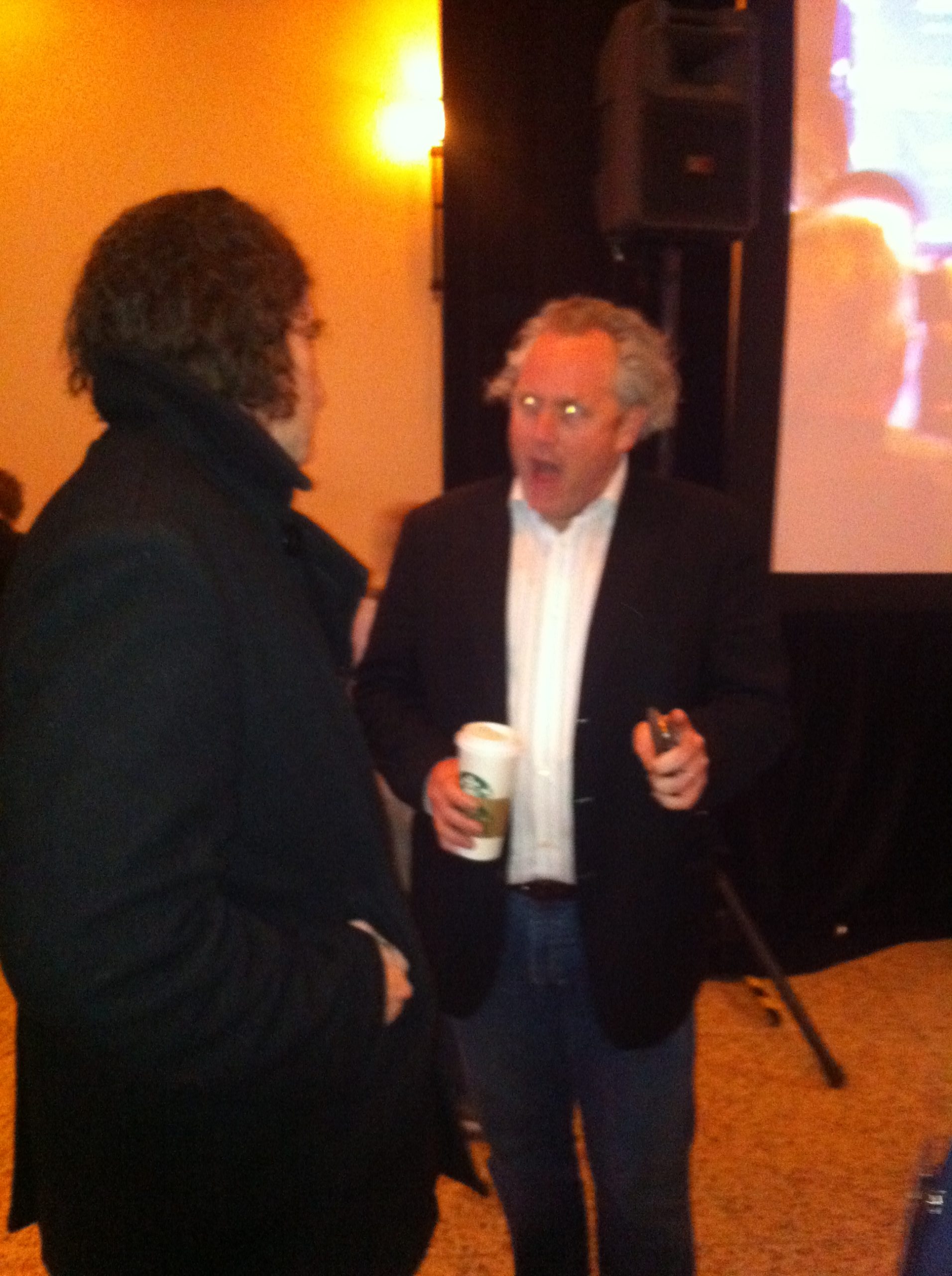 UPDATE: After the event, the guy on the left below asked Andrew Breitbart to justify his claim that Occupy has a “rape culture” and to name one person affiliated with the Occupy movement that has been charged with rape. Breitbart argued loudly for several minutes saying it was someone with “a foreign-sounding name” and that he had police reports of one such instance which apparently allows him to claim the entire movement has a “rape culture”.