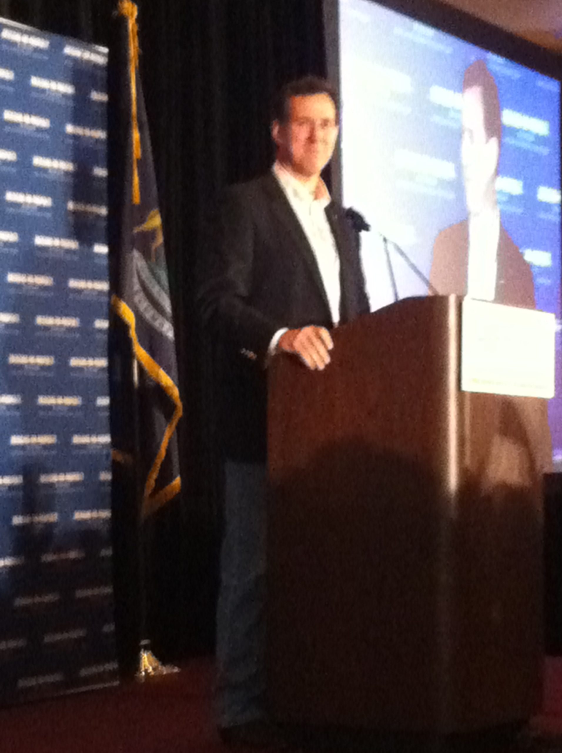 Just reminded the crowd that Santorum once I endorsed him as a good conservative. Slammed Santorum for supporting pro-choice candidate Arlen Specter in the past.