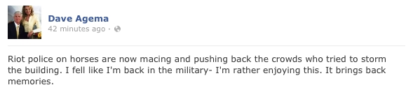 1:35 p.m. – Michigan Radio reports that Republican David Agema is getting turned on by police making protestors on his Facebook page: