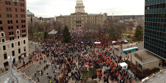 This is what democracy looks like: pic.twitter.com/uh9dKqbI #SaveMI #RightToWork