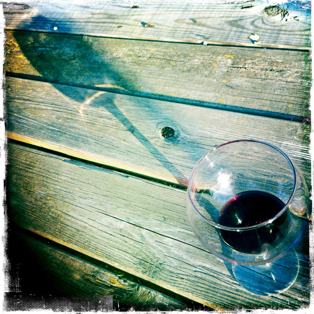A glass of wine enjoyed during an evening round of horseshoes in our backyard