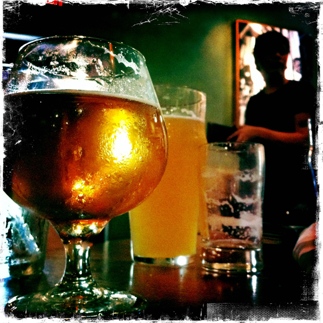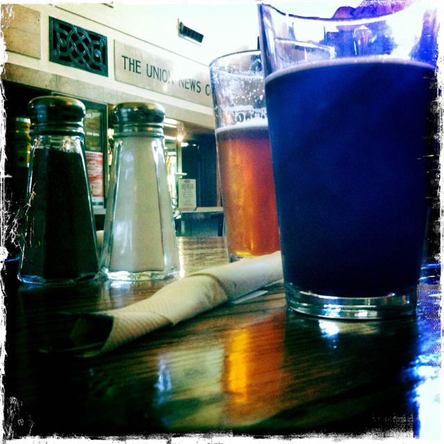 First, there’s our regular joint, Arbor Brewing Company. Describing us as regulars is an understatement. Chris with his Sacred Cow IPA and me with my Alte 22 German Alt (in a Mug Club member mug, of course.)