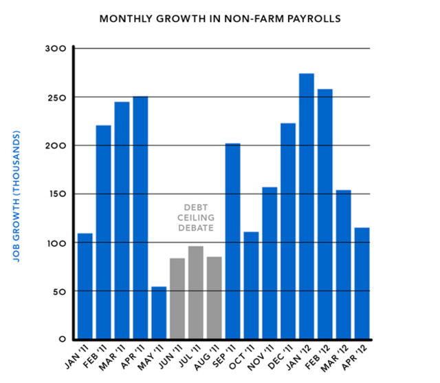 So we’ve got to pay our bills…And they better choose quickly, because time is running short. The last time Republicans in Congress even flirted with this idea, our AAA credit rating was downgraded for the first time in our history; our businesses created the fewest jobs of any month in nearly the past three years; and, ironically, the whole fiasco actually added to the deficit.