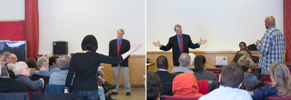 Ann Arbor Dems Chair Mike Henry moderates the question