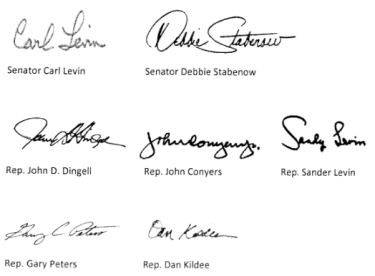 The letter was sent out under Stabenow’s letterhead and was signed by her, Senator Levin, and Congressmen John Dingell, John Conyers, Sander Levin, Gary Peters, and Dan Kildee. Here it is in its entirety:
