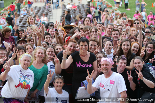 Eve Ensler with various legislators at the Vaginas Take Back the Capitol rally
