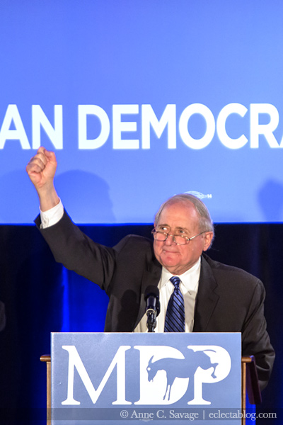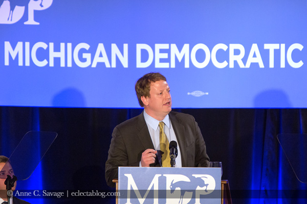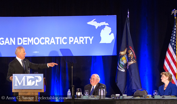 Next up was Congressman Gary Peters, the current leading contender to replace Senator Levin (though nobody, including him, has announced their candidacy so far. A strong defender and ally of Detroit, Peters said, “You cannot have a strong Detroit area or a strong state of Michigan without a strong city of Detroit.” Democrats, he said, are committed to restoring prosperity in Detroit.