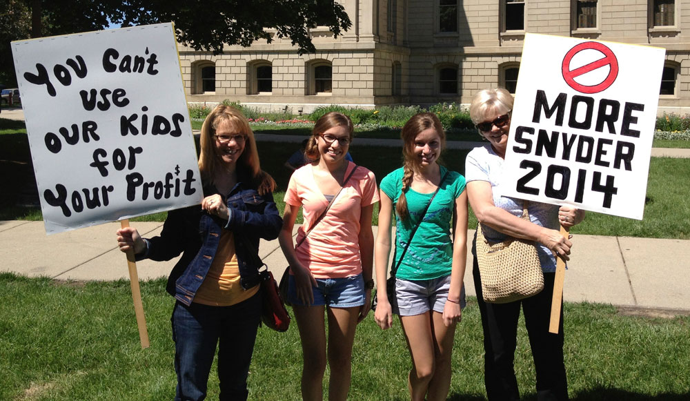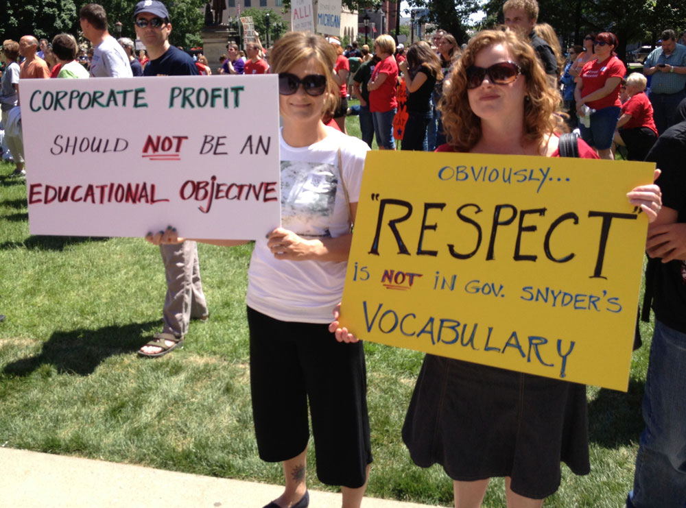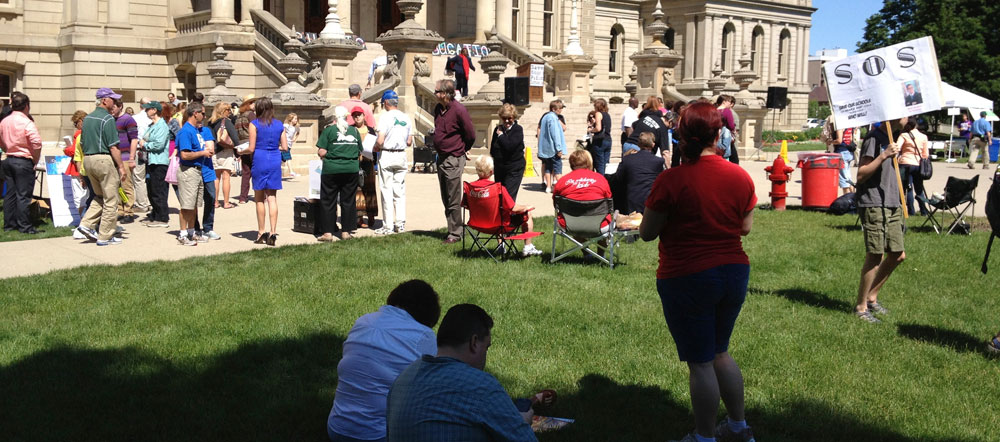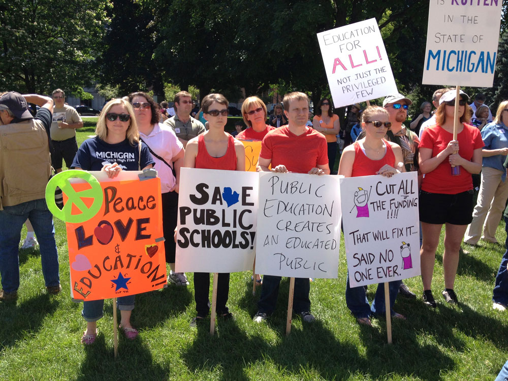 With that in mind, here’s a collection of photos & videos from today’s event, which was arranged for by a completely grass-roots organization called, simply enough, Save Michigan’s Public Schools.
