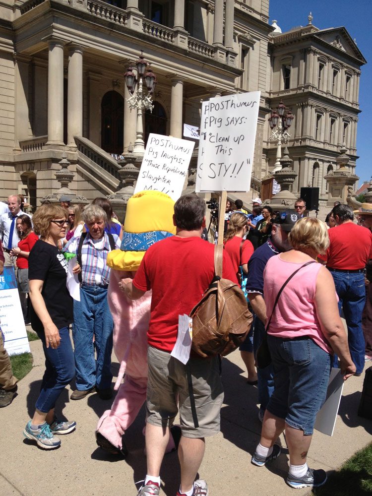 Eclectablog himself wasn’t able to attend the grassroots-organized rally in support of the public school system in Lansing this morning; fortunately I was able to attend, with a contingent of my fellow Bloomfield Hills-based public school advocates. Yes, that’s right: Even in Bloomfield Hills, where most of the residents seem to think that the deliberate, systematic destruction of the Michigan Public School System will somehow spare them, there’s a solid base of concerned parents and other residents who know the truth: Sooner or later, Gov. Snyder and the Republican-held state legislature will come after us as well, unless they’re stopped.