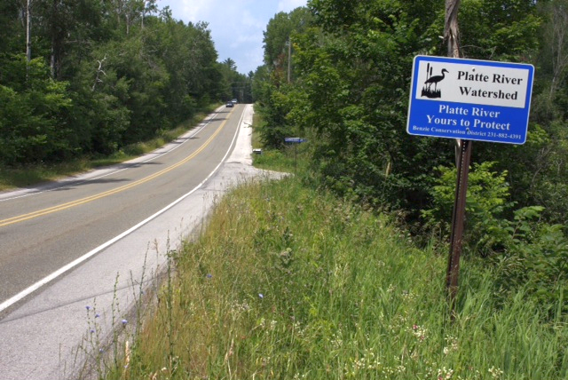 Notice the yellow truck brining the road. One of the potential environmental consequences is “surface runoff carrying suppressant and/or breakdown products” into waterways and aquifers. As it turns out, this truck was brining in the area of the Platte River Watershed through which the beautiful Platte River runs, an important ecological and recreational resource for northwestern Michigan.