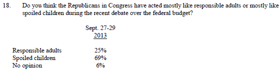 Given their hostage-taking behavior, it’s no wonder that a majority of the country believes that the Republicans are acting like “spoiled children”: