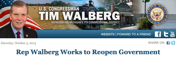 Tim Walberg has sent out emails to his constituents twice in the past month bragging about his votes to “keep government running”.