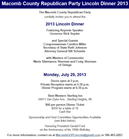 At that time, Land was someone who the Republicans considered a non-entity in terms of her candidacy. She couldn’t get anyone to endorse her publicly because the entire Michigan Republican Party was waiting for someone else to step up. In fact, if you look at the invitation to the dinner, Land isn’t even mentioned even though she introduced a tribute video to President Gerald Ford: