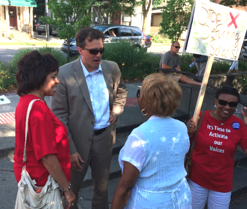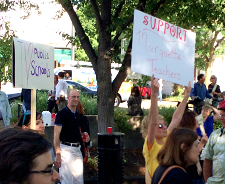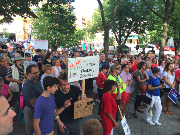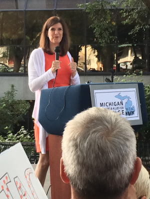 Yesterday, nearly 300 teachers and advocates gathered in Ann Arbor for a rally to support public education, sponsored by Michigan Teachers and Allies for Change (M-TAC). Attendees listened to speakers like State Representative Jeff Irwin, Ann Arbor Education Association President Linda Carter, Ann Arbor Public Schools Superintendent Jeanice Swift, and Ann Arbor Public Schools teacher Quinn Strassel. The headliner for the event was Democratic candidate for Lt. Governor Lisa Brown. Brown reminded the crowd which candidates for Governor and Lt. Governor are on the side of teachers, students, and public education, in general. (HINT: It’s not Snyder/Calley.) She told the crowd that education is the number one priority for her and Democratic gubernatorial candidate Mark Schauer.