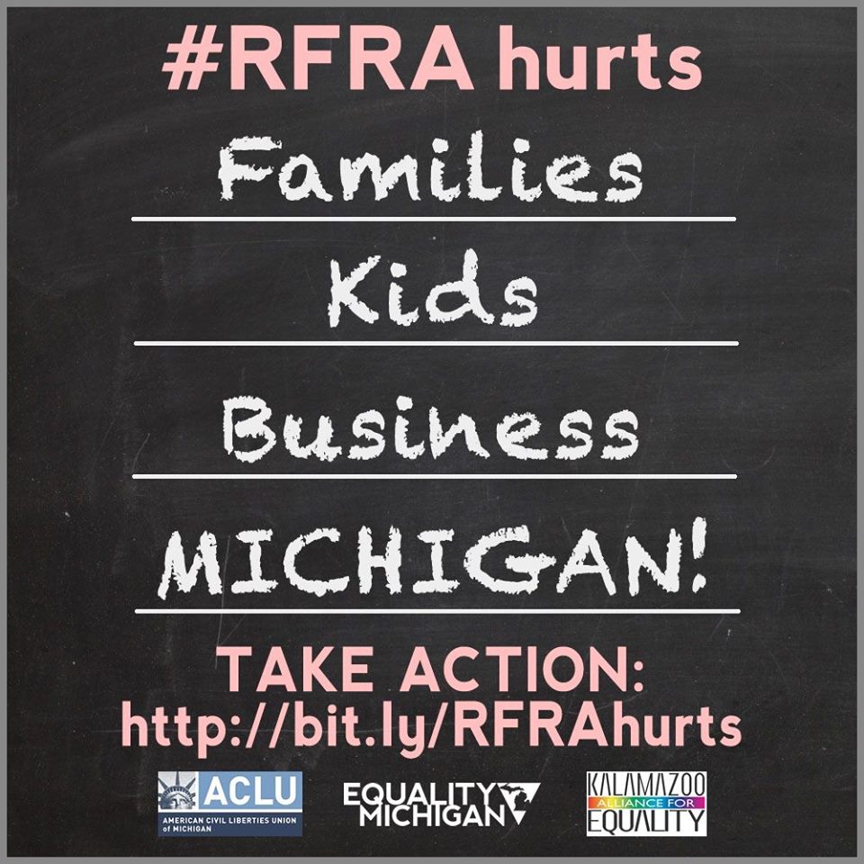- Sign this petition from Equality Michigan and partners to tell your Senator, the Senate Judiciary Committee and Governor Snyder you oppose RFRA legislation in Michigan.