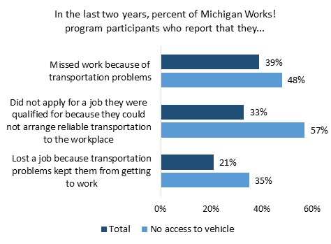 - 33% report that they did not apply for a job they were qualified for because they could not arrange reliable transportation to the workplace.