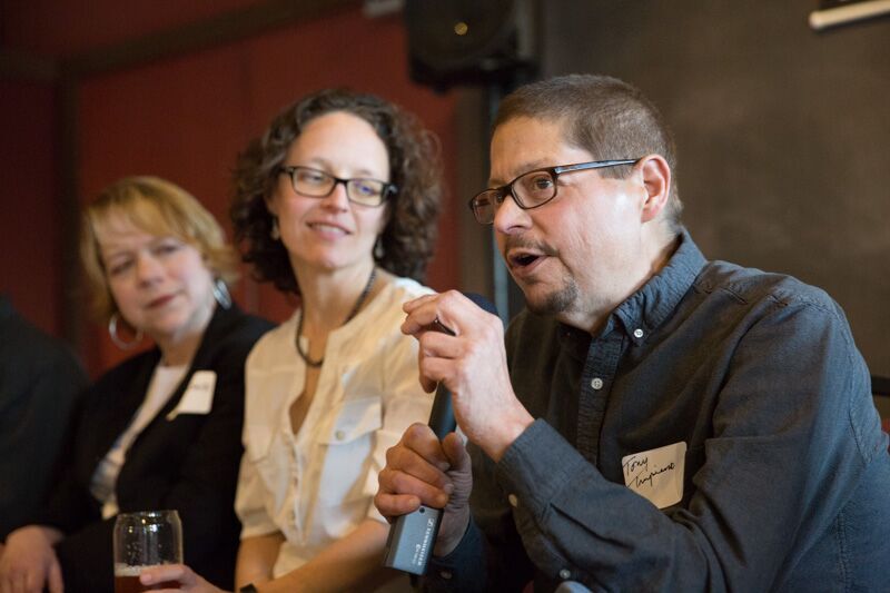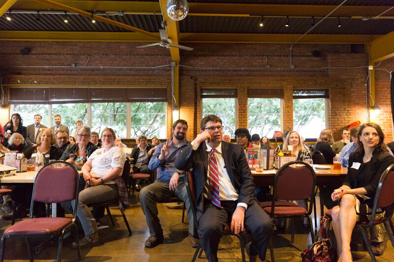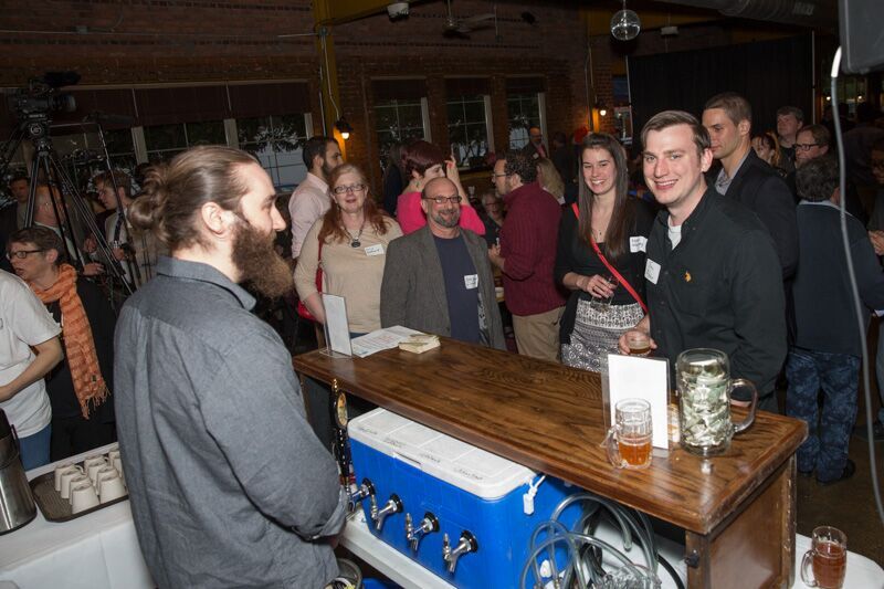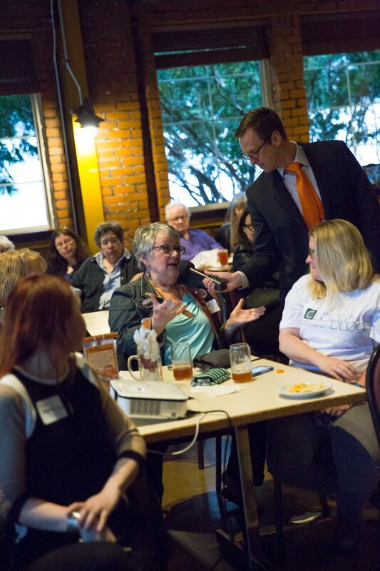 Allen, our bartender for the night, serves up a brew to Roger Kerson, Nikki Messany, her boyfriend Progress Michigan’s Sam Inglot, and Eli Savit. Others in the photo include Catherine Daligga, Washtenaw County Commissioner Conan Smith, and Lauren Bacans from Planned Parenthood, and