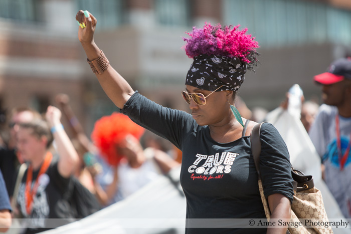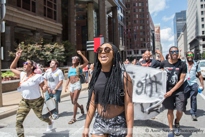The peaceful protest then returned back down the ramp, and marched back to the America’s Center where the convention was being held.