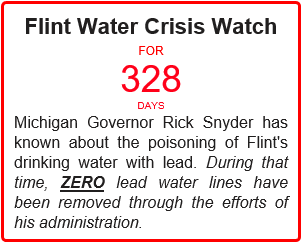 It has now been 328 days since Gov. Rick Snyder publicly admitted that the drinking water in the city of Flint, Michigan had been contaminated with the powerful neurotoxin lead. This admission came months and months after the problem had been brought to light and, in the 328 days since then, no lead water service lines have been replaced through the actions of his administration. This is despite the fact that the poisoning was the direct result of cost-saving measures taken by his appointed Emergency Manager overseers and the failure of top administrator in his administration, Dept. of Environmental Quality Director Dan Wyant, who was clearly unqualified for his job.