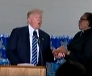 So, after embarrassing himself in front of the national media who made up most of the audience in the church, Trump is now trying to portray himself as a victim of Rev. Timmons, a woman he now says set him up, ambushing him to make him look bad.
