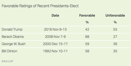 But he’s still likely to be the least popular president ever inaugurated in the history of attempting to measure popularity.
