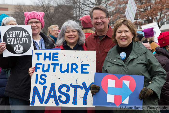 Here are some of Anne’s remarkable photos from the march in Washington, D.C. yesterday. What you see is diversity manifest. All ages, all ethnicities, all gender expressions, people from all across the country (we even heard of folks there from Alaska!) All speaking with a common voice to say, “this is not normal, this is not acceptable, and we will FIGHT Donald Trump’s fascist moves every step of the way.”