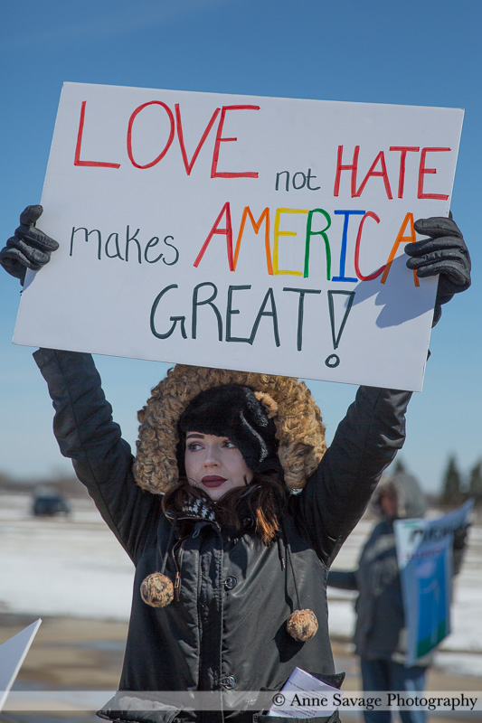 While he was in Ypsilanti today, Trump was greeted by hundreds and hundreds of protestors who braved sub-freezing temperatures to make their voices heard. Here are more photos from the protest along with a Facebook Live video, all by Anne C. Savage, special to Eclectablog.