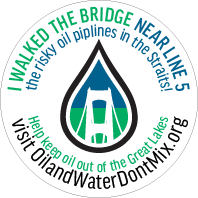 Join thousands as we walk as a group across the bridge wearing blue shirts. Any blue shirt will do. We encourage you to purchase a blue Oil & Water Don’t Mix shirt here (all designs available in blue – allow time for shipping). We are planning on meeting just east of the toll booths on the St. Ignace (north) side of the bridge and departing for our walk at 9:00 am. Please don’t be late! RSVP below to let us know you’re coming.If you’ve walked the bridge before on Labor Day, this year the bridge authority is making a change you need to know about (more info here). The bridge will be closed to all vehicle traffic (except buses transporting walkers) from 6:30 am until Noon. Get more information about the bridge walk here. BIG NOTE: Because of this change, no walkers will be allowed to start walking after 10:00 am.