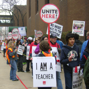 I’m less sure about Weingarten’s angle here. It’s a curious gambit to join forces with a guy like Bloomberg, whose disdain for teachers is well documented. She may be thinking that showing her ability to work across party lines, or to appear “nonpartisan,” will demonstrate her interest in seeking solutions to the problem being illuminated by these walkouts. Or, she may be revealing that she’s part of the problem–clinging to a corporate approach to union leadership that’s failing to meet the needs of her union’s members in state after state.
