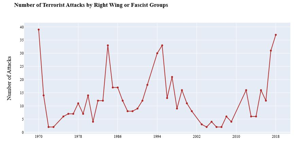 Additionally, 2018 was the year with the highest number of fatalities and injuries from right wing and fascist terrorism in recorded history.