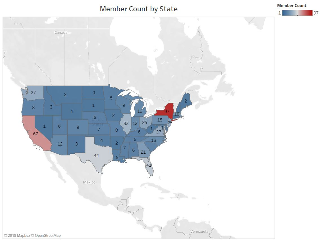 Strangely though, despite the fact that the south had a plurality of the members, the two states with the largest amount of members were New York and California who are dominant blue states, while Texas was number 3.