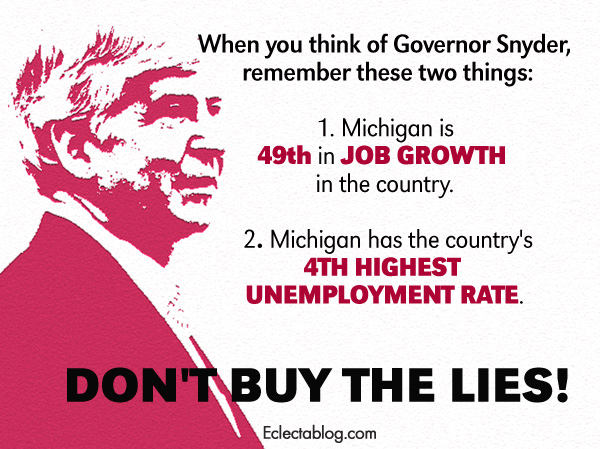 Rick Snyder’s record: Michigan is 49th in job growth & has the 4th highest unemployment rate in the USA